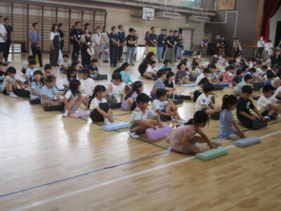 5年生のすこやか口腔検診を体育館で行いました。市内で5校がその対象となるようで今回、大和田小学校での開催となり、たくさんの歯科医師の先生方が来校しました。まず、専用のキットを使い、口腔内の状態を調べたり、ガムを使ってかむ力を確かめたりしました。後半はお話でしたが、さまざまな飲料の糖分の量や歯への影響、歯の磨き方の工夫など、歯や口腔内のことについて聞きました。いろいろなお話から疑問をもった子どもたちは積極的にたくさん質問をしていました。