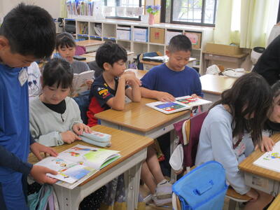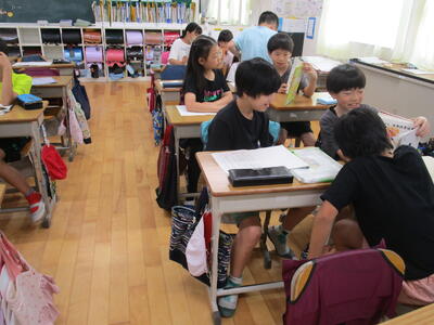 朝読書の時間、きらきら星さんの読み聞かせを6年生で行いました。本を読んでくださる方のほうを向いてみんな聞き入っていました。1年生も読書をしたらすぐに読書の記録を書いていました。また、学級文庫の前で本を選ぶ姿も見られました。進んで読書する習慣が身についてきたのではと思います。今日で読書月間も終わりますが、それぞれの目標が達成できているとよいですね。読書月間終了後も継続して読書を続けてほしいです。