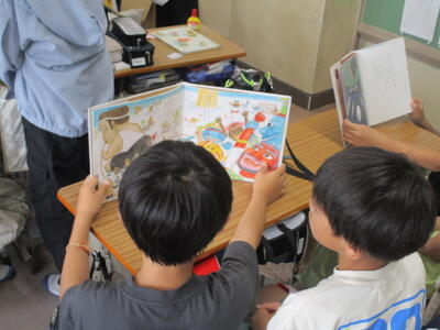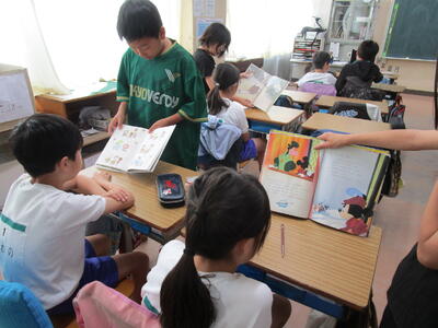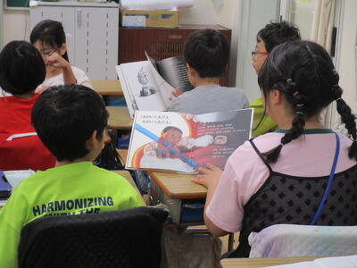 きらきらぼしの読み聞かせが業間休みにのびのびで行われました。みんな集中してよく聞いていました。今回の本は『しにがみさん』という題名で落語のお話としても有名です。ちょうど4年年生は落語の学習をしたばかりだったので、興味のある子たちが読み手の方の場所に集まって、お話を確かめていました。もう少しで読書月間も終わりますが、これからも楽しい時間として読書を続けてほしいです。
