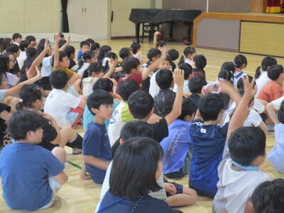 6年生は6日、市内音楽会へ大和田小学校の代表として参加しますが、今日は1年生に披露しました。今までの練習の成果を発揮して、素敵な歌声を体育館中に響かせていました。その素敵な合唱へのお礼と、本番に向けたエールの気持ちを込めて、1年生は盛大な拍手を送りました。いつもお世話になっているお兄さん、お姉さんの姿を羨望のまなざしでみている1年生でした。