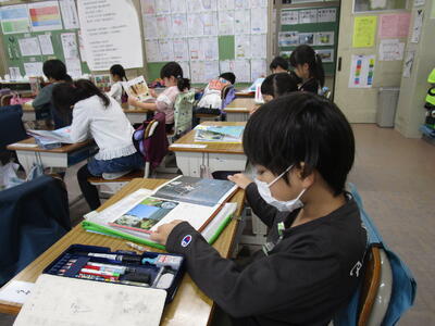 朝読書の時間、きらきら星さんの読み聞かせを6年生で行いました。本を読んでくださる方のほうを向いてみんな聞き入っていました。1年生も読書をしたらすぐに読書の記録を書いていました。また、学級文庫の前で本を選ぶ姿も見られました。進んで読書する習慣が身についてきたのではと思います。今日で読書月間も終わりますが、それぞれの目標が達成できているとよいですね。読書月間終了後も継続して読書を続けてほしいです。
