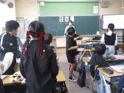 今日はハロウィン。学級によってお楽しみ会をやるクラスがありました。欠席がいたため別の日に変更しようと、楽しみは次にというクラスも。また5年生の英語の学習では特別バージョンのハロウィンじゃんけんで盛り上がっていました。給食でもかぼちゃを使ったデザートが出るなど、今日は少しうきうきした雰囲気が流れていました。