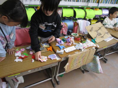 1年生のどんぐりごまづくりに地域の方がボランティアできてくださいました。二日間で4学級順番で活動しましたが、ボランティアの方に穴あけを手伝っていただき、一緒に作ったり、回したり楽しく活動していました。ボランティアの方の中に自宅で作ってくださった方がいて、その方がおっしゃるには、どんぐりの形状等によって出来に違いがあり、よく回るのは50個中12個ぐらいかなとのこと。よく回るどんぐりにみんな集中していました。