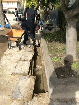 本日、施設開放団体である大和田シラサギ野球部・大和田サッカークラブの保護者(と兄弟姉妹)の皆様にご協力いただき、校庭周囲の側溝清掃を行いました。