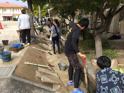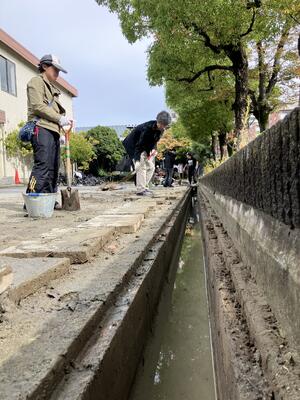 50名以上の方々が参加し、側溝の泥上げや落ち葉の除去など、汗を流しながら熱心に作業してくださいました。