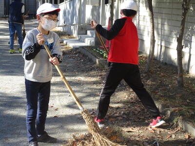 今週から落ち葉清掃が始まります。各学年で場所が割り当てられ、ほうきで掃いたり、手で集めたりしながら落ち葉を清掃します。今日はさっそく5年生が行いました。「先生、こんなにいっぱいある。」「こっちもあるから来て。」と、一生懸命に掃除をしていました。葉っぱも乾燥しているので落ち葉のかさかさとした音も聞こえてきます。友達と協力しながら、たくさんの落ち葉を集めることができました。学校がきれいになっていくのは嬉しいことですね。他の学級も取り組んでいきます。