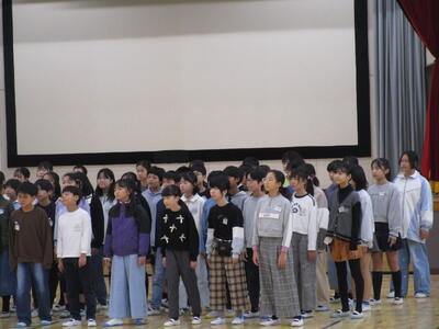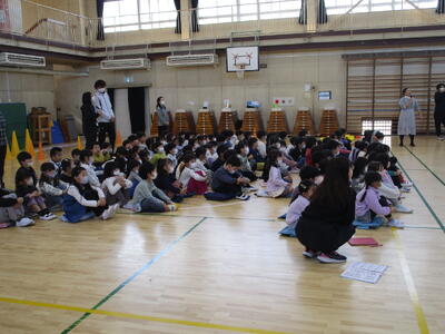 6年生は6日、市内音楽会へ大和田小学校の代表として参加しますが、今日は1年生に披露しました。今までの練習の成果を発揮して、素敵な歌声を体育館中に響かせていました。その素敵な合唱へのお礼と、本番に向けたエールの気持ちを込めて、1年生は盛大な拍手を送りました。いつもお世話になっているお兄さん、お姉さんの姿を羨望のまなざしでみている1年生でした。