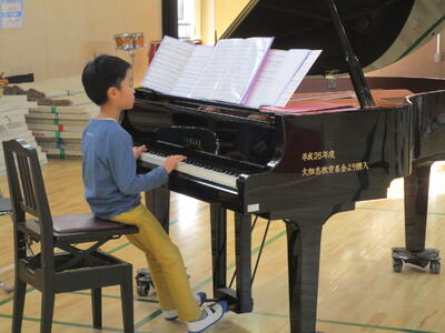 校内音楽会が近づいてきました。今日は低学年の練習の様子です。1年生はお話に沿って動きや言葉が入り、楽しそうに歌っていました。広い文化会館での演奏になるので、見に来てくれるおうちの人まで声が届くようにと一生懸命に練習していました。2年生は鍵盤ハーモニカやいろいろな楽器を使っての演奏と歌です。みんなで楽しく!を大事にと練習していました。3年生も真剣なまなざしで先生の指示をよく聞いて練習していました。残り少ない練習時間ですが、本番が楽しみです。