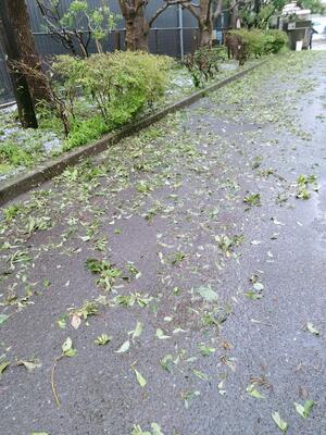 3枚目の写真のように、雹によってたくさんの葉や小枝が地面に散乱していましたが、PTAの皆様のおかげで何事もなかったかのようにきれいになりました。