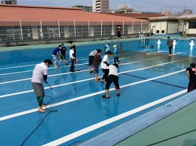 いよいよ今週から3年ぶりの水泳指導が始まります。今日は絶好の「プール清掃日和」でした。
