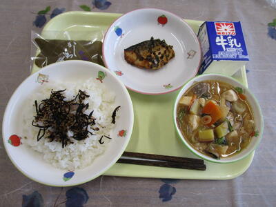 牛乳 ご飯 鰆の南蛮漬け きゅうりの土佐和え 豚汁
