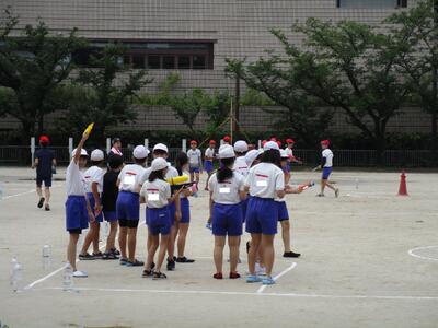 今年度から、体育のまとめどりを始めたため、今日は体育館で2年生が跳び箱、校庭では3年生と6年生が高跳び、4年生が走り幅跳びをやっています。どの学年の児童も練習はもちろん、準備や片付けも一生懸命に取り組んでいました。