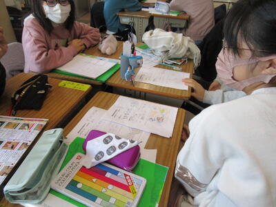 昨日は、偶数学年の学習参観があり、今日は奇数学年の学習参観があります。3年生では、学習参観で「安全マップ」の発表会をするクラスがあり、その発表の準備をしていました。子どもたち張り切っています。