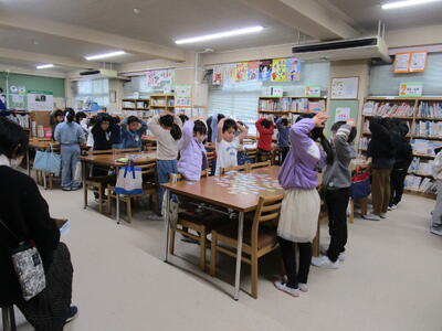 昨日から3日間で1時間に1クラスずつ、図書室で百人一首大会を行っています。今日は朝から教室で4年生のクラスが練習をしていました。子どもが札を読んでいましたが、かなり札の取り合いがすばやかったです。1時間目は、2年生のあるクラスが、大会を行っていました。担任の先生が札を読んでいましたが、上の句だけで、札が取れるグループもちらほらあり、1月の始めたころより、格段にレベルアップしていました。