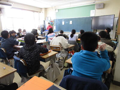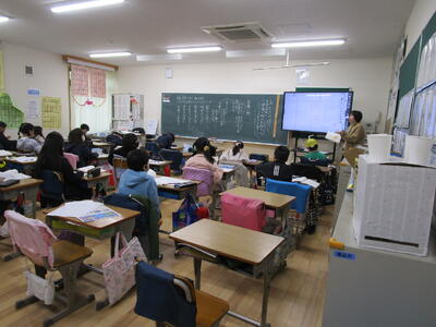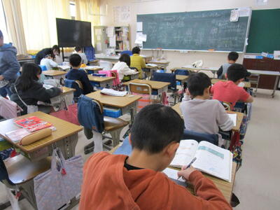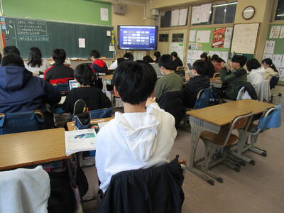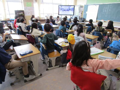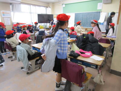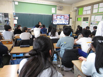 6年生、来週からいよいよ卒業式練習がはじまるので、本校の過去の卒業式の録画を教室でみていました。「卒業式は皆さんがいままでやってきたことの集大成です。返事は短くはっきりとできるといいですね。これは、日ごろから返事をきちんとしている積み重ねです」と先生がいうと、児童は「はい」としっかり答えていました。
