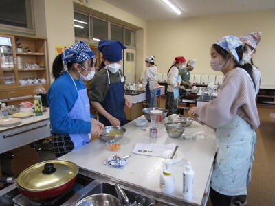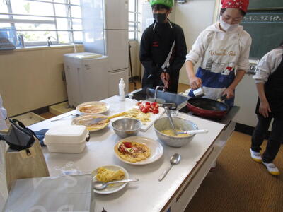 6年生、ホットケーキの粉を使って調理実習していました。班ごとに作るものが違っていて、ホットケーキやクレープ、蒸しパンなど様々なものに挑戦していました。