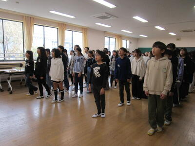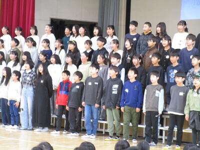 6年生、朝から卒業式に向けて学年合同で歌の練習をしていました。美しい歌声が校内に響いていました。