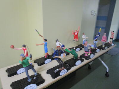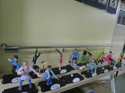 6年生、将来なりたい自分を、図工で表現しています。「ダンサー」「宇宙飛行士」「サッカー選手」などなど、動きのある作品が少しづつ出来上がってきていて、廊下の一角がにぎやかになっています。