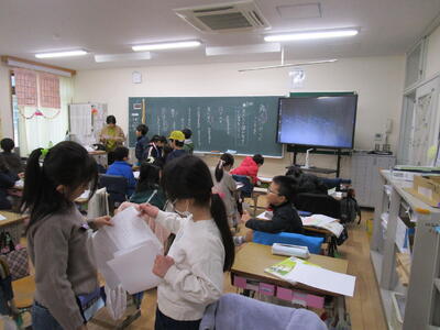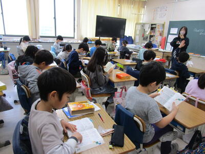 3年生、国語「おにたのぼうし」の学習です。登場人物の気持ちの変化を考えながら読み進めていました。「おにだって、いろいろあるのに、おにだって・・・」の部分のおにたの気持ちを想像して、意見を活発に発言していました。