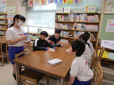 5年生、国語でミニビブリオバトルをしていました。6つのグループにわかれて、その中で自分のおすすめの本を紹介していました。自分のおすすめの本について話すので、どの子もしっかりとその本のおすすめポイントをグループの人に伝えていました。