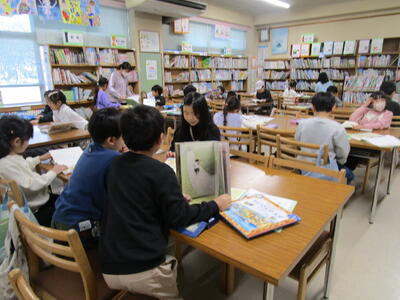 1年生、国語の「おはなしどうぶつえん」で「本のよさがつたわるようにしょうかいしよう」をめあてに友達に本を紹介していました。自分の好きなページを開きながら、好きな理由をしっかりと話していました。