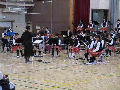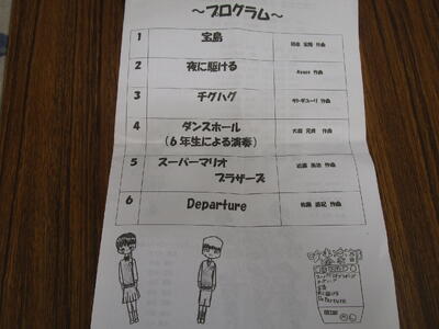 放課後、吹奏楽部のスプリングコンサートがあり、吹奏楽部の児童は、ユニフォームに着替えて、登場しました。客席には、吹奏楽部の保護者や児童がたくさん座っていたので、初めのうちは緊張した面持ちでしたが、演奏を重ねるとともに緊張もほどけていったようです。6年生だけの演奏「ダンスホール」がおわると、下級生がプレゼントを渡す場面もありました。「スーパーマリオブラザーズ」では、数名の先生が、演奏に一緒に参加しました。最後は、「Departure」で、6年生の旅立ちにふさわしい壮大なメロディーを部員たち全員で力をあわせて奏でました。