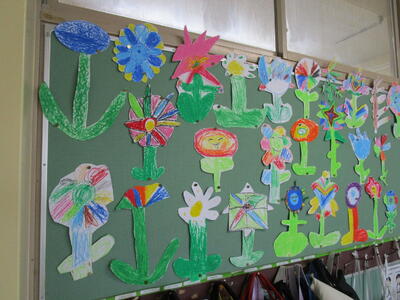 1年生、廊下にありがとうの花が掲示されていました。とてもカラフルだったり、にこにこと笑っていたり、見ているこちらも元気になります。