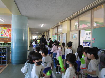 朝の時間に歌を歌ってるクラスや学年が多くありました。1年生、今月の歌「さんぽ」を身振りや手ぶりを付けて元気に歌っていました。5年生は、同じく「さんぽ」をとても美しい声で歌っていました。6年生、体育館で「校歌」の録音をしていました。さすが、ボリュームもあり、素晴らしい歌声でした。