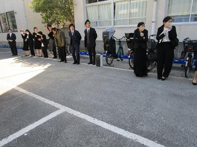 朝の登校時間、8時前に学校についた子供たちは、中庭のところで待つことになっています。8時少し前に、教頭先生が子供たちを呼びに来て、先導して昇降口に向かいます。朝、校門に立っていると、自分から挨拶する子供が、昨年度に比べて大変増えました。