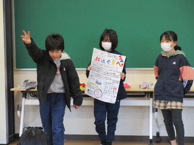 のびのびルームで、5年生が自分たちで作った委員会のポスターをもとに、委員会紹介を4年生にしていました。「代表委員会は、1年生を迎える会や卒業を祝う会などの計画や運営をしています。話すのが得意な人が向いています。話すのが苦手でも、担当の先生が、やさしく教えてくれるので大丈夫です。・・・」ポスターをもちながら、委員会の活動内容や向いている人などを紹介していました。全部の委員会の発表が終わると、4年生からは「私は、栽培委員会に入りたいと思いました。お花を育てると聞いて、お花が好きなので、楽しくやれそうです」など、感想がよせられました。