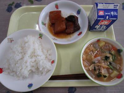 牛乳 ごはん ぶり大根 さつま汁