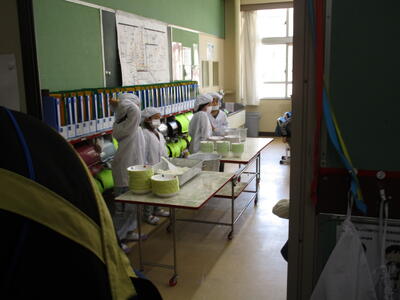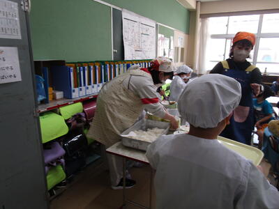 東北地方太平洋沖地震が起こった3月11日を市川市では「防災教育の日」としました。そのため、今日は少し災害を意識した献立になっていました。ご飯はラップにくるむことでお皿を汚さずに食べられます。すいとんは、小麦粉を練った生地を小さくちぎって入れた汁物で、災害時の炊き出しとして作られることが多くあります。災害時は「ごみを出さない」ということも大切です。残さず、しっかり食べてくださいね。
