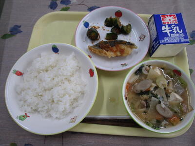 牛乳 ご飯 さわらの南蛮漬け きゅうりの土佐和え 豚汁