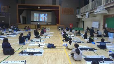 3,4年生は14日(水)、5,6年生は16日(金)に、外部講師をお招きして、書初めの指導をしていただきました。