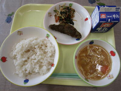 5月5日は端午の節句、こどもの日にはこいのぼりを立てたり、兜や鎧を飾ったりするほかに行事食のちまきや柏餅を食べてお祝いします。この飾りや食べ物には、子どもたちの健康や未来への願いが込められています。給食では、いわしをこいのぼりに見立てました。いわしには小骨がありますが、よく噛むと食べられます。カルシウムが取れて骨を成長させることから、こどもの日にふさわしいと考えたメニューです。鯉が激しい流れの滝を上りきると龍になるという伝説から、困難があってもそれを乗り越えられる人になってほしいと願っています。