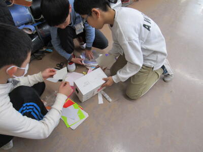 5年生の教室では、ユニセフ募金の協力をお願いする代表委員のつくった動画をみていました。募金の使われ方や、募金の期間などがわかりやすく伝えられました。隣のクラスでは、募金箱を一生懸命作っていました。どのクラスも動画を見ていて、来週募金活動が行われるようです。1年生の廊下前にわかりやすい掲示も貼られていました。