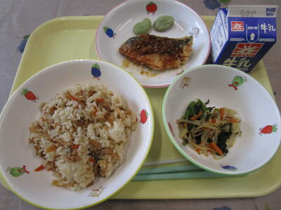 来週の月曜日、11月24日は「和食の日」です。いい日本食を語呂合わせしたそうです。和食は身近な食事ですが、ご飯が中心で、季節ごとにさまざまな材料を使います。また、お箸を使用すること、行事と合わせて食べられる食事、「だし」のうまみを上手に使うこと等「和食」の良さや日本らしさを感じることができます。今日のじゃがいもと玉ねぎの味噌汁も鰹節のだしで作りました。だしを上手に使うと塩や油など調味料が少なくても満足できる味に仕上がります。