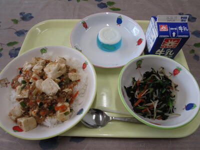 牛乳 ご飯 麻婆豆腐 磯香和え 富士山ゼリー