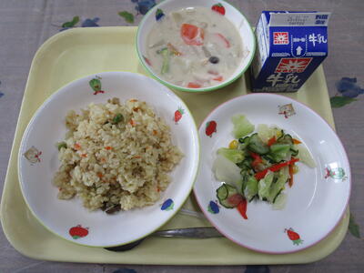 牛乳 メキシカンライス クリームシチュー コーンサラダ