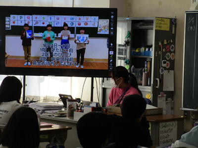 2年生、あるクラスでは、教室で音楽の時間にリズムにのって冬休みの出来事を、簡単に一人ずつ発表していました。また、別のクラスは、図書室で、百人一首の練習をしていました。上の句を読んで札をとる児童もいて、1年間での成長を感じました。
