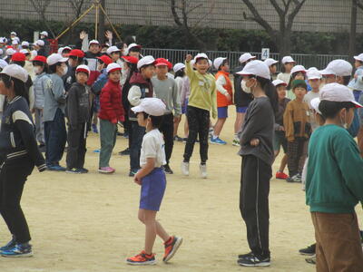 業間休み、2.4年生の兄弟ペアのクラスによる長縄記録会がありました。4年生の代表委員会児童の進行で、記録会がスムーズに行われました。子供たちも応援したり、励ましたりして一生けん命に取り組みました。