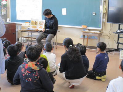 1.6年生、朝読書の時間に、1.6年のペアさん一緒に先生の読み聞かせを聞きました。今日のテーマはクリスマスかお正月のどちらかに関係のある本を読むとのことで、「100にんのサンタクロース」「もちづきくん」など、先生が選んだ本を読み聞かせしました。どの教室でも、子供たちは真剣に聞いていました。