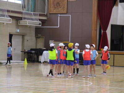 5年生、体育館で元気いっぱいバスケットボールの学習に取り組んでいました。動きがとても素早かったです。