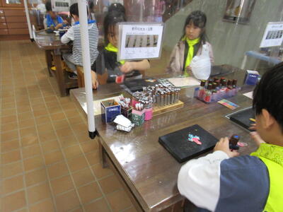 1年生が校外学習でアンデルセン公園にいきました。出発式の時から子供たちのワクワク感が伝わってきました。到着すると、大きな滑り台の遊具やわんぱくボール山で思い切り遊びました。ボール山は、あっという間に黄色い山に変わりました。その後、3つのグループに分かれて制作活動をしました。「タイルアート」、「写真たて(木)」「レザーキーホルダー」です。どのグループの子供たちも、自分でいろいろな工夫をして素敵な作品を作っていました。お昼には、「お腹すいたー」と言いながら、とてもうれしそうにお弁当箱を笑顔で広げていました。