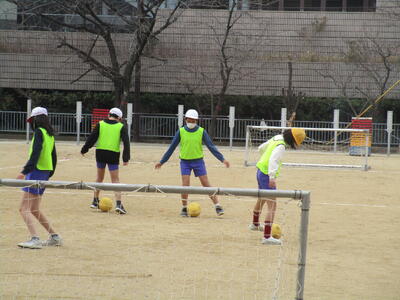 5年生、学年合同でドッジボール大会を、チームに分かれて、張り切ってやっていました。元気いっぱいで寒さも吹き飛びそうですね。