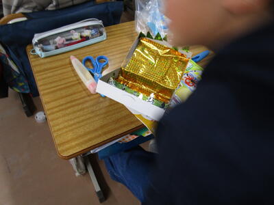 4年生、図工で「すてきな明かり」を作っていました。プラスチックダンボールにセロハンを張り付けていました。とても、カラフルに仕上がっていたので、中からライトで照らしたら、さらに素敵な作品になることでしょう。