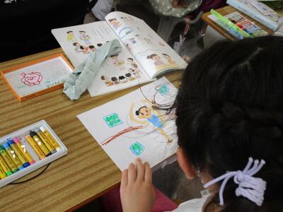 別のクラスは国語「みんなにはなそう」で、自分の好きなことを友達に話すときの「絵」を準備していました。「自分の部屋」や「一輪車」「バレエをやっているところ」などとても楽しそうに絵を描いていました。