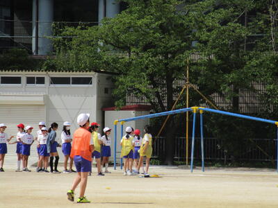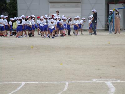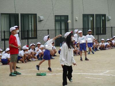 その後、6年生は、1年生の「ソフトボール投げ」の手伝いをしています。6年生が手伝ってくれると記録測定も早く終わります。学校全体のことをいろいろ考えて行動してくれている6年生、頼もしいですね。