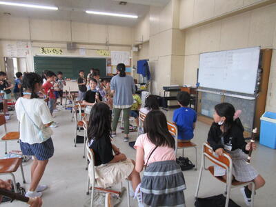 4年生は外国語で英語の聞き取りをして、何を話しているかを確認していました。