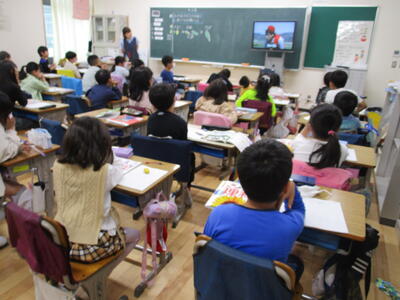 今日は、授業研究会が行われました。4時間目は2年生、5時間目は4年生で授業が行われました。2年生は「生き物クイズブックをプレゼント!」で、おもしろいクイズを作るために、子供たちが交流をしています。4年生は、「新聞を作ろう」で、グループで記事の割り付けを話し合っていました。